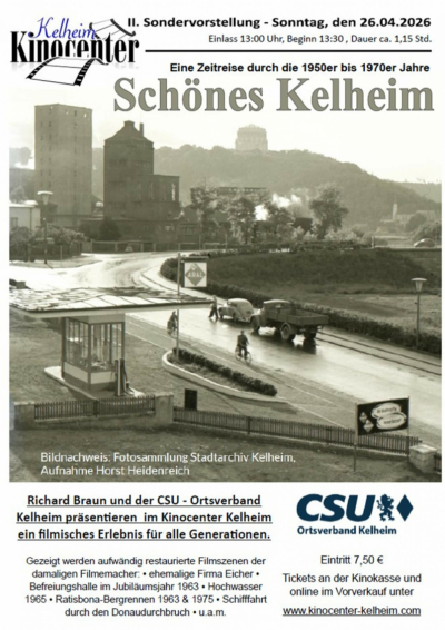Erleben Sie "Schönes Kelheim in der Wiederaufführung" im Kino-Center Kelheim! Entdecken Sie die Schönheit unserer Region auf der großen Leinwand. Genießen Sie atemberaubende Bilder und inspirierende Geschichten aus früheren Zeiten. Nur am Sonntag 26.04. um 13:30 Uhr. Sichern Sie sich Ihre Tickets und seien Sie dabei. Wir freuen uns auf Sie!